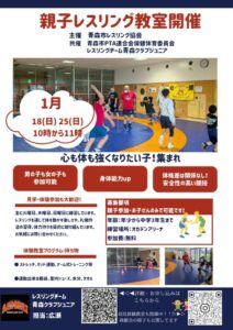 次回は、1月25日(日)10時~11時、オカデンアリ-ナ(青森市合浦1丁目13番1号)にて、親子イベント「親子でレスリング第2弾」を開催いたします。